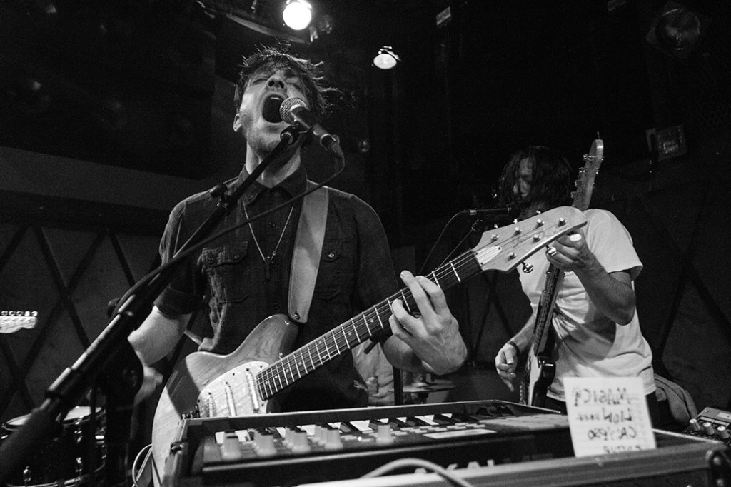 The final set that I caught was The Stationary Set, who surprisingly had throngs of fans at their feet the entire night, belting out each song with fervor and ease. I had the lucky/unlucky spot next to a girl who overzealously kept whipping her hair into my face, but I was smack dab in front of keyboardist Joshua Hoisington who was super animated, and had a perfect view of lead singer Andrew Lutes as he passionately sang each note. Their set seemed to build to an intensity that everyone seemed to feel because by the last song, the room was almost exploding with sound and energy. Their sound was hard to pin down – part electronic, part pop, part alt rock – but it all melded together and worked.