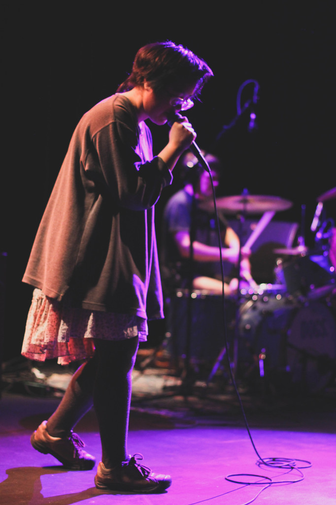 Hailing from SUNY Purchase where they all went to school, Ryan Galloway, Elaiza Santos and Nick Corbo took the stage Monday night at the Music Hall of Williamsburg ready to shake up the crowd. From the beginning of the set, Santos controlled the room in an introverted way, hunched over with her baby doll dress and oversized sweater billowing over the microphone and her quiet voice pouring out emotion. Galloway, stage right, rocked shorts in this December cold as well as his guitar while Corbo pounded the drums with ferocity while giving some winning facial expressions. You could feel the connection of the three friends creating a harmony through all of the crazy noise that they were creating.