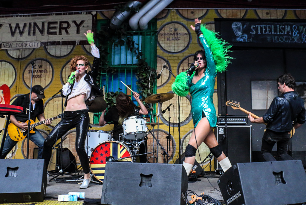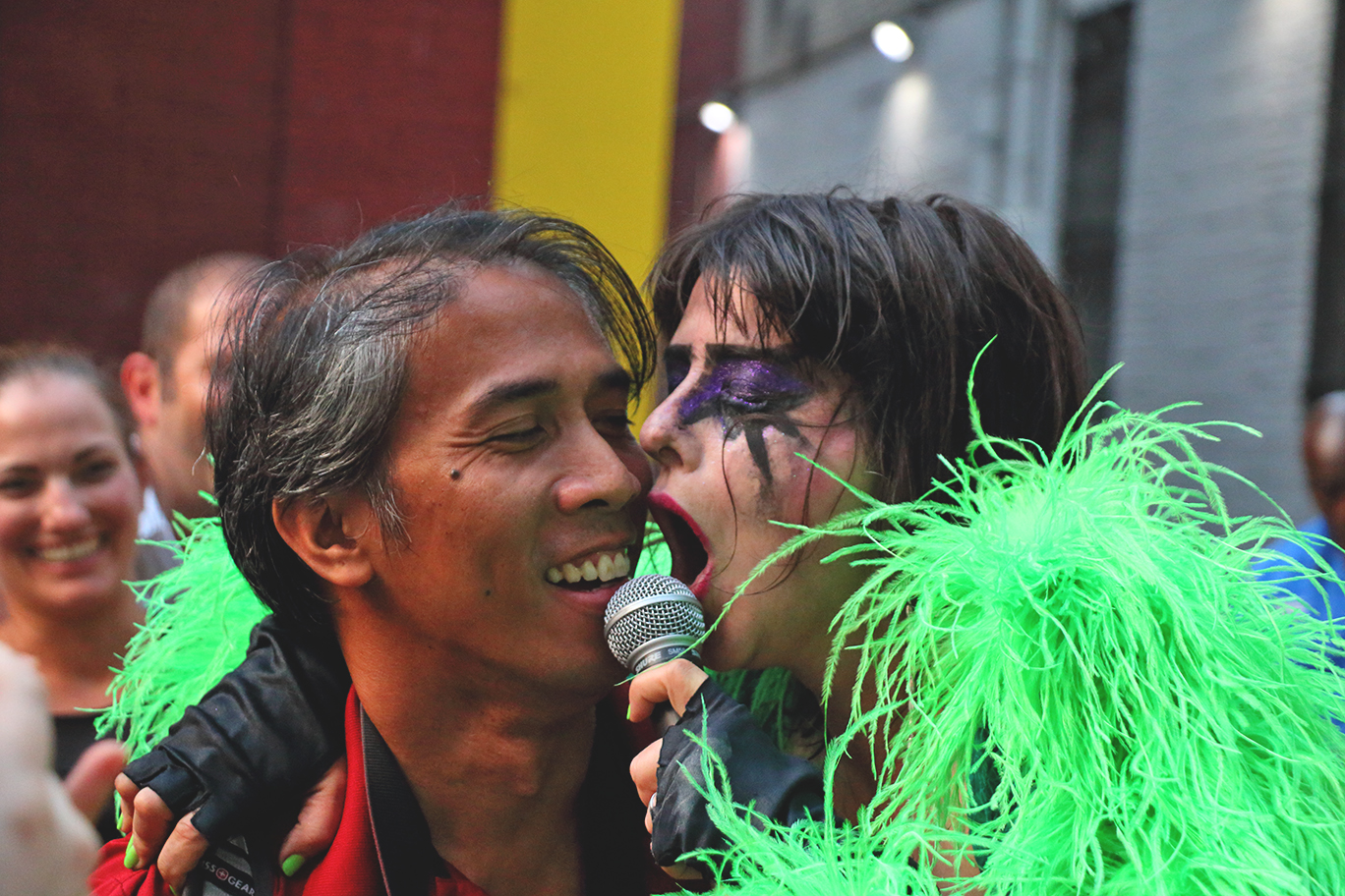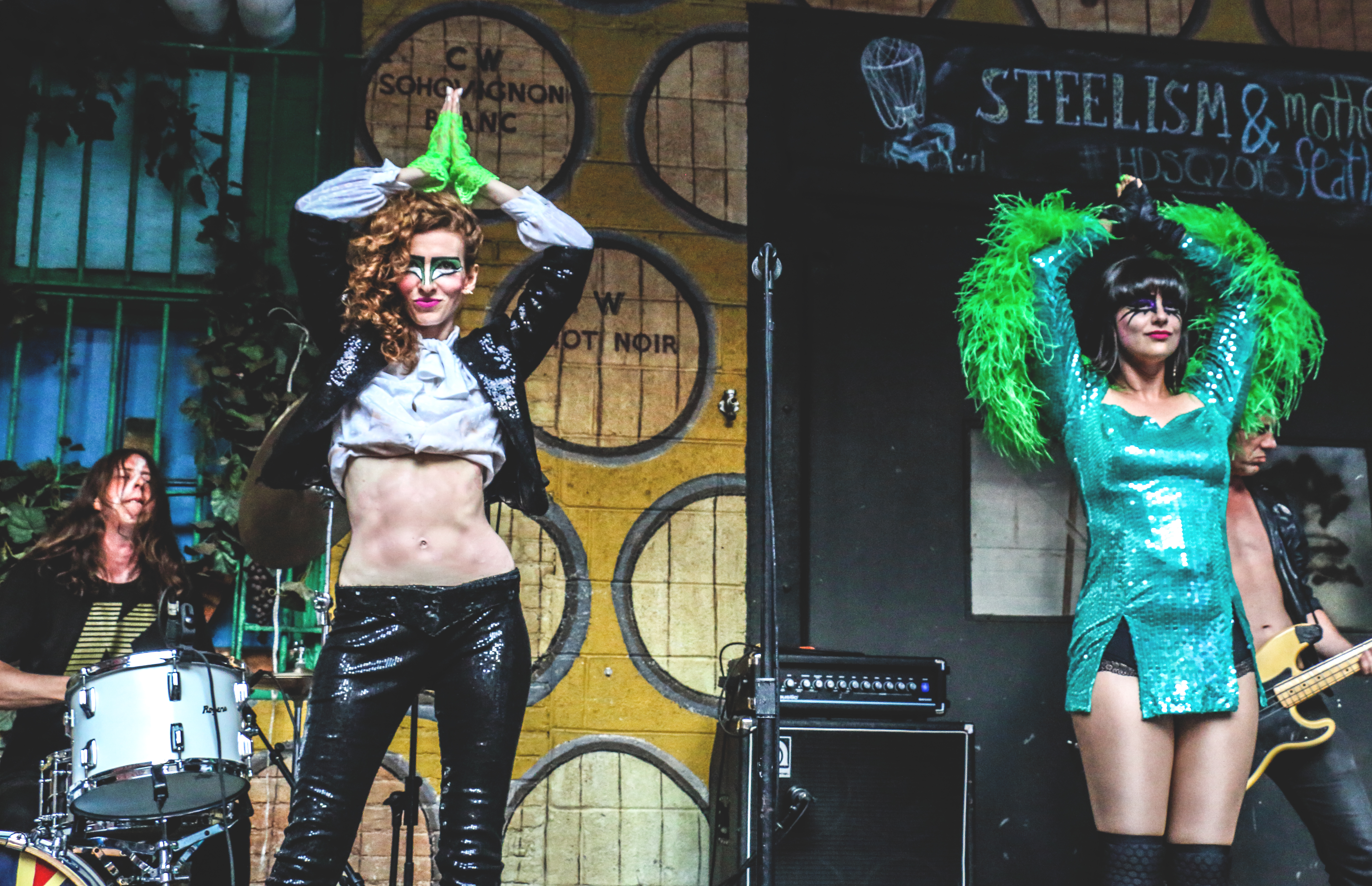 Sequins, glitter, feathers, and lace can be a surprising sight in City Winery’s refined outdoor alcove. The sheer contrast was almost as jaw-dropping as Mother Feather’s supercharged glam rock performance, which had West Villagers in the surrounding apartments headbanging and screaming from their windows.