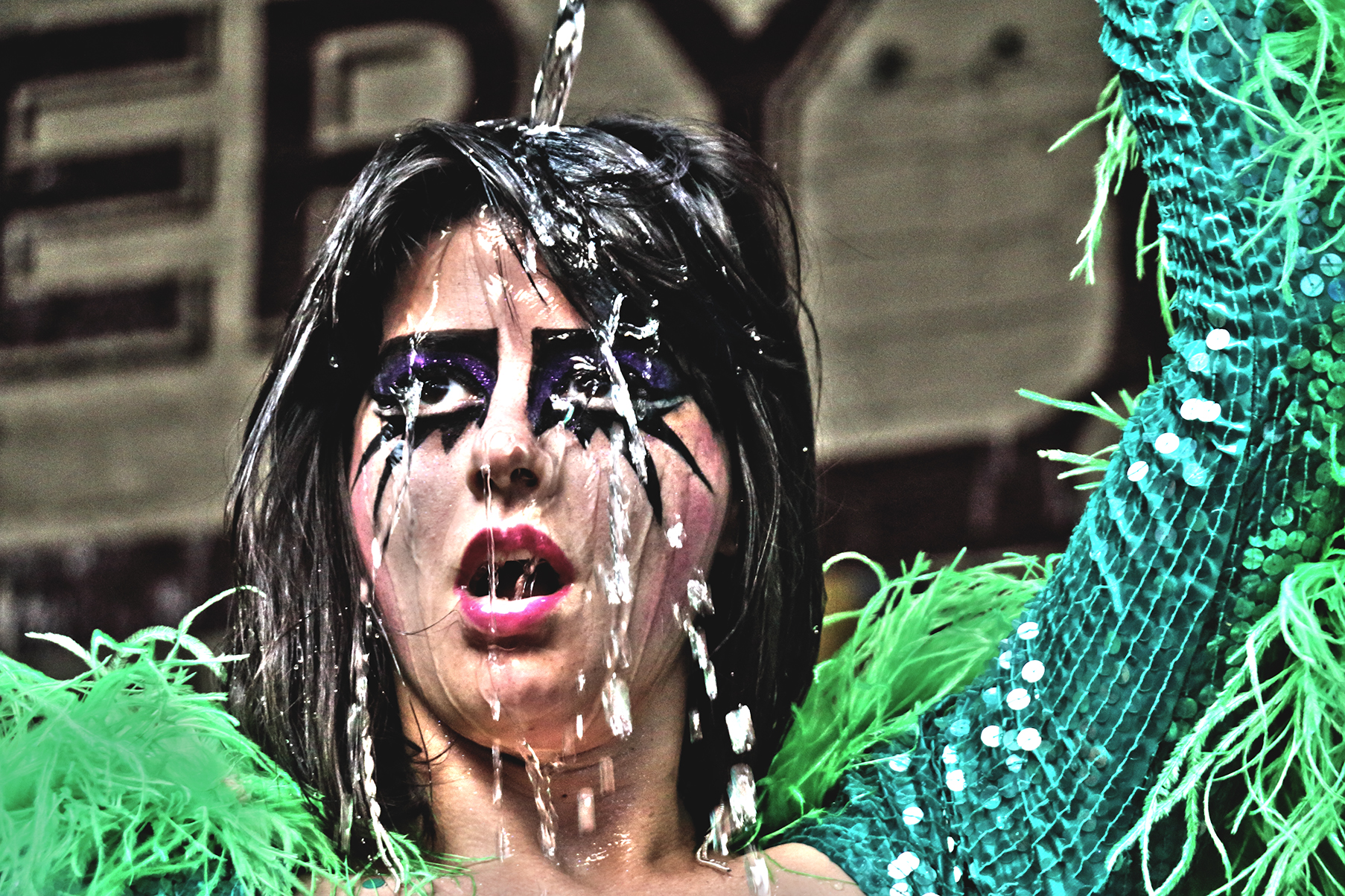 The two front a slapdash, freaky-fun attitude, which pops against their group of heroically stoic men. Whether they were dancing between each other’s legs, swallowing a microphone, or showering themselves in water, Ann and Elizabeth owned the stage and demanded your focus.
