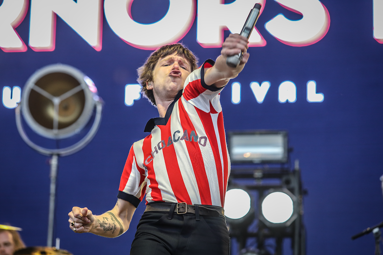 As the day dipped into evening, one of the striking things about the show-stopping set from Franz Ferdinand was remembering just how many catchy hits belong to them. With frontman Alex Kapranos taking an already-hyped crowd up another big notch, the Scottish rockers thrust us into an unavoidable dance party with hits like “No You Girls,” “Do You Want To,” and “Take Me Out” – and it continued on fervently in spite of some light drizzles. “Thank you for laying on the weather,” Alex said with a grin. “Making us feel like we’re back home in Glasgow.” Luckily, the rain didn’t get out of hand, and we could all soon focus our attention on Cage the Elephant, a highly-anticipated set for everyone in sight. The wild, high-impact band somehow sounded even better than usual, and took full advantage of their surroundings with frequent dives into the rabid crowd, frontman Matt Shultz spanning the stage with impossible speed as he sang (and at one point, returning with a pile of flower crowns draped around him). Much-loved radio favorites like opener “In One Ear,” “Ain’t No Rest for the Wicked,” “Cigarette Daydreams,” and “Shake Me Down” were supplemented by a massive wave of singing from the crowd, and it was an exciting response to witness for a band that certainly deserves it.