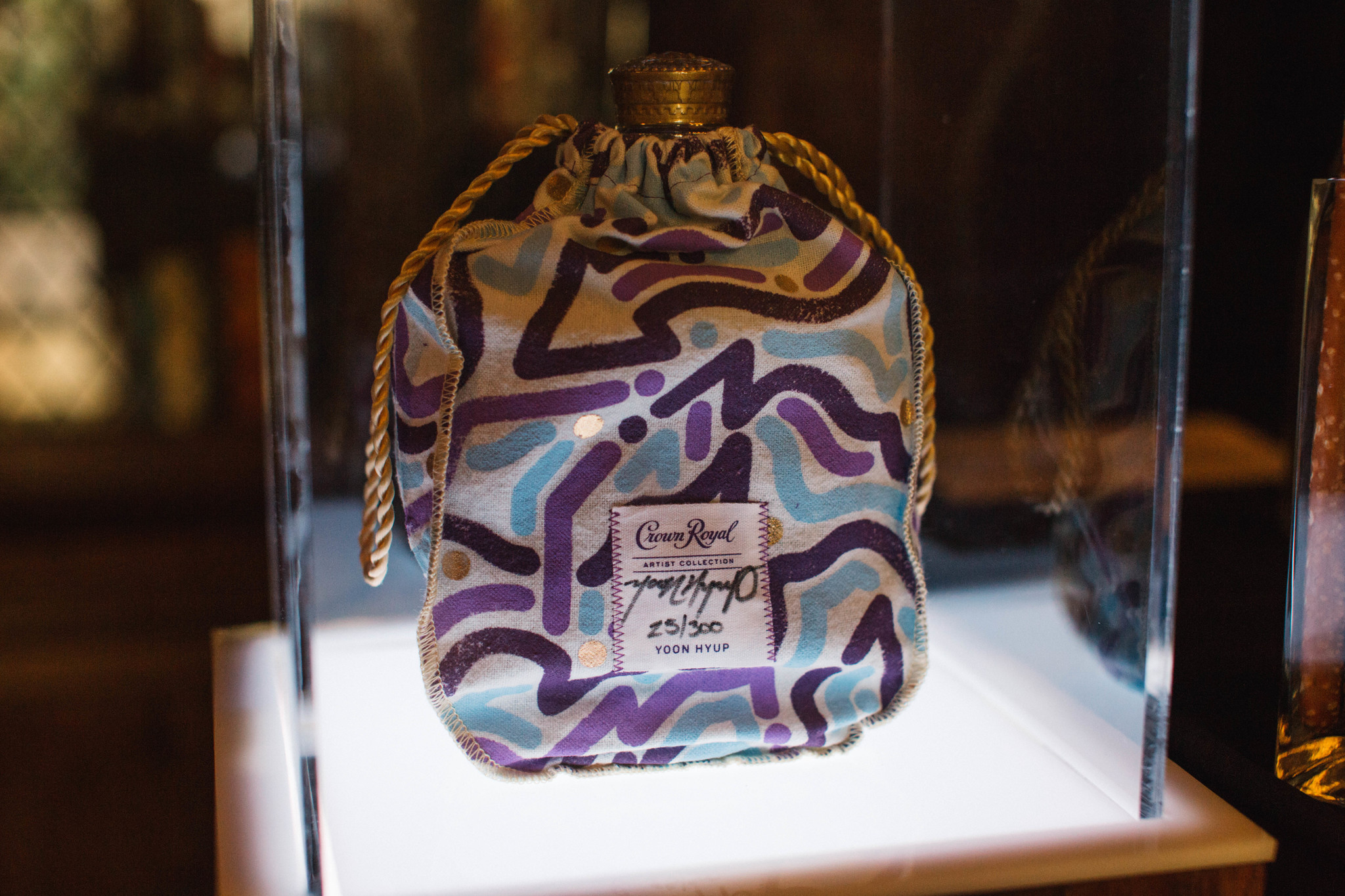 The Explorers Club – a mansion on the Upper East Side of Manhattan adorned with flags that have been on the moon and stuffed polar bears from the Arctic and treasures and trinkets collected from the world over – this was the setting for the unveiling of the Crown Royal’s Artist Collection. The Collection is a new take on the Canadian Whiskey’s ubiquitous purple felt bags. New York based artists Santtu Mustonen and Yoon Hyup contributed their designs to these special limited edition bags.