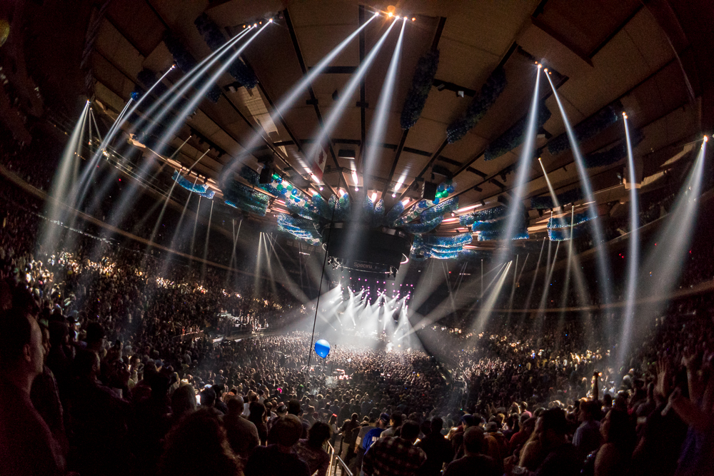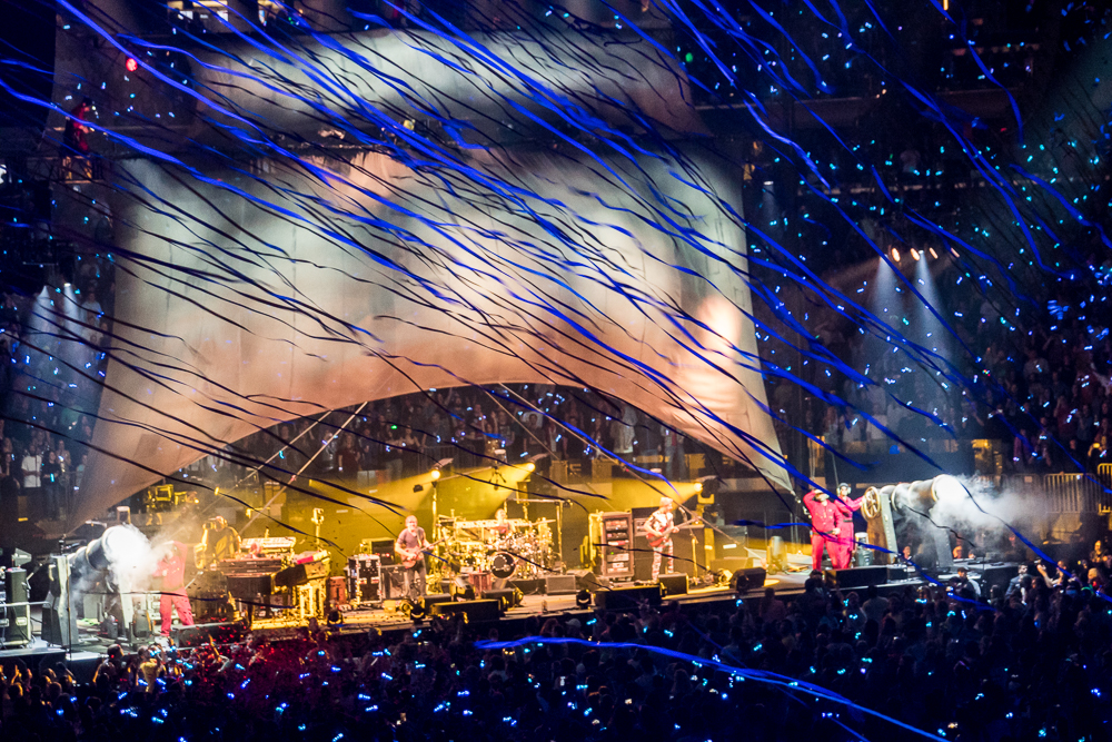 During the second set break, everyone was getting ready for the official new years celebration that was going to take place. Little did everyone know that the yacht rock playlist that was happening over the PA was a clue as to what the gag was going to be. In past years there was a golf themed set including golf carts going around the stage, the band playing in a hour glass that descended from the ceiling, the drummer being blown up into a balloon, and last year with the band making it rain cats and dogs at midnight. Before the set started everyone’s wristband that they had been given went off in different colors.