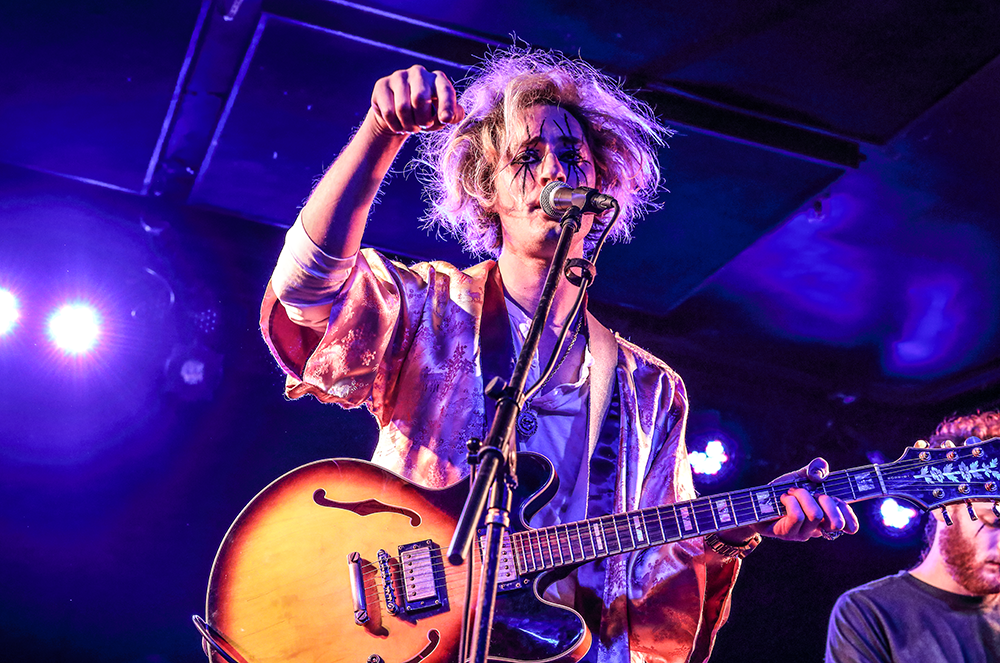 It wouldn’t be an Uni show without some glitter and thinly-veiled sexual energy, and we got plenty of both from their lead singer. Seemingly more comfortable on stage than off it, Nico thrust his hips to the hard beat of the drums, danced all over his bandmates as they soloed – getting them to crack into smiles in spite of their instinctive focus – and threw handfuls of star-shaped confetti over the heads of the satisfied crowd. A whirlwind of trippy musical highlights came with the liberating insta-hit, “Adult Video,” followed by “Mushroom Cloud” – the aforementioned track that not only found Nico wielding a hairspray flamethrower, but was dedicated by the singer with a short-and-sweet political statement. “This next one is for all of you Donald Trump fucking assholes…of which there are hopefully none here,” he said, throwing his hands up with a “whatever” flourish and leaving it at that. His candid message got a big whoop from the audience, and that high-energy song built momentum for the next one, “Greed,” during which Nico raced around them on the floor to administer another dose of glitter. But they hadn’t used all of their tricks quite yet, and the next song, “Your Eyes,” featured him in a dramatic, three-faced mask that was a perfect fit for the lyrics. Uni closed with a heavy, syrupy “Electric Universe” that further secured their spot as one of the city’s coolest up-and-coming groups. It was the kind of rock show you could watch on repeat and still get lost in the smallest moments; suspense…climax…suspense…climax in an ever-enticing tug-of-war.