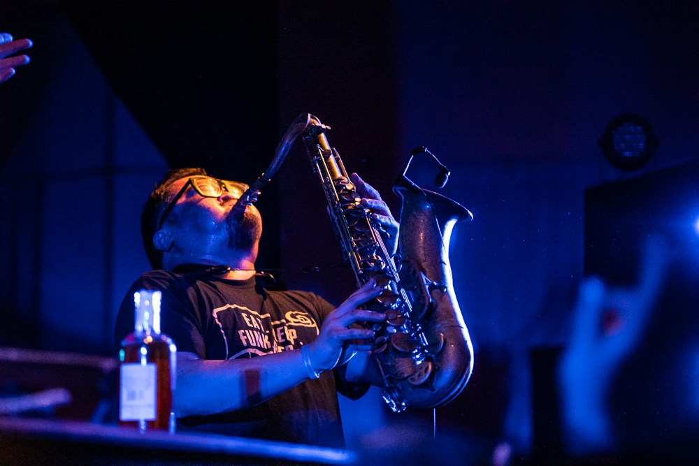 Finally Andy Frasco and the U.N. took the stage and brought their wild stage presence that has taken Jam Cruise and other major festivals by storm. While we didn’t get Andy being hoisted in a chair by the crowd or actual crowd surfing, there was plenty of dancing in the crowd by Andy and the band. They are a literal non-stop bolt of energy and the crowd fed right off of it.