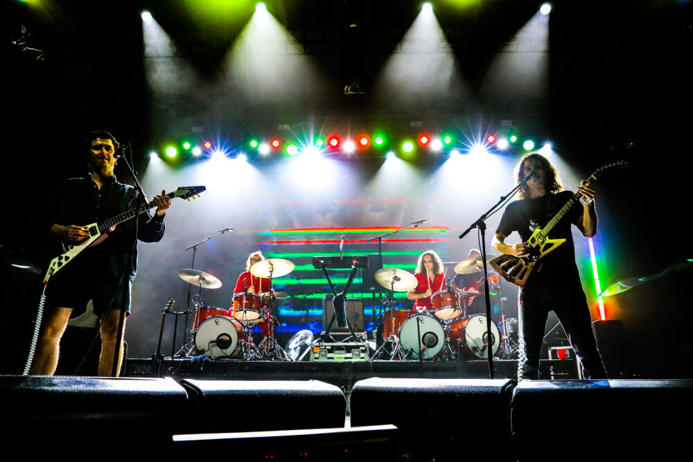 Their encore-less show ended with over twelve minutes of “Am I in Heaven?” that included a mind-blowing medley; they Frankensteined bits of “Altered Beast,” “Rattlesnake,” Nonagon Infinity, a hyperspeed “Boogieman Sam,” and “Cellophane” into a colossal climax that is still being discussed online. Last night’s setlist was the stuff of Gizzardy dreams, so it’d be crazy to gripe, but attendees may lament that the much-desired “Tezeta” indeed made the list (intended to follow “The Bird Song”), but was not played – seemingly due to Stu’s keyboard having malfunctioned shortly before that. And instead of a penultimate “Venusian 2,” King Gizzard busted out “Planet B,” which wasn’t on the setlist (“There is no Planet B.” Gizzverse confirmed). Right before that scorcher, appropriately, Ambrose commented, “You guys look nice and sweaty!” It was really a mixture of sweat, start-and-stop raindrops, tossed drinks, spit from everyone’s aggressive singing, and surely even some tears, but he was right; the tangled fans in the pit were utterly drenched.