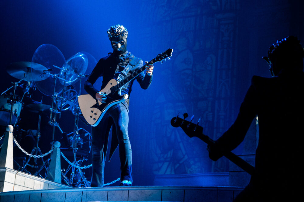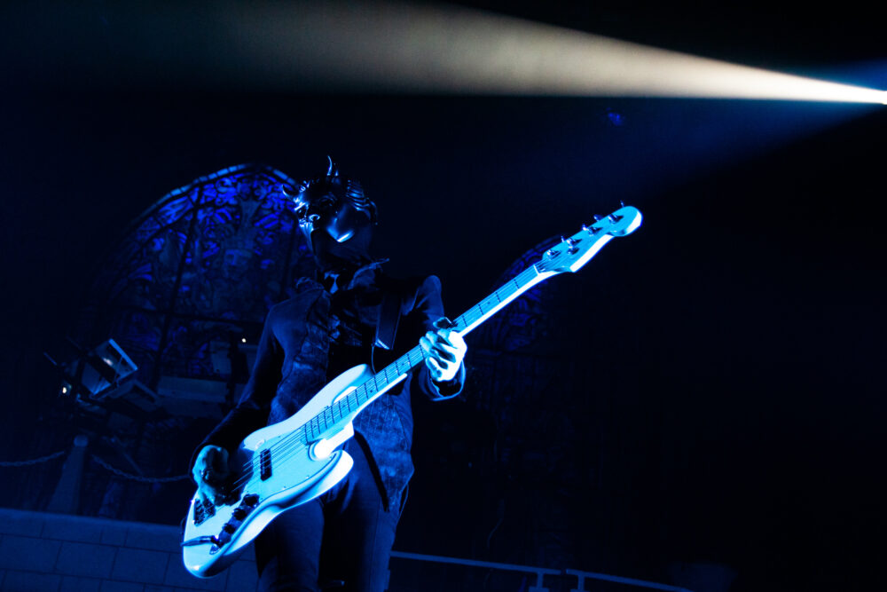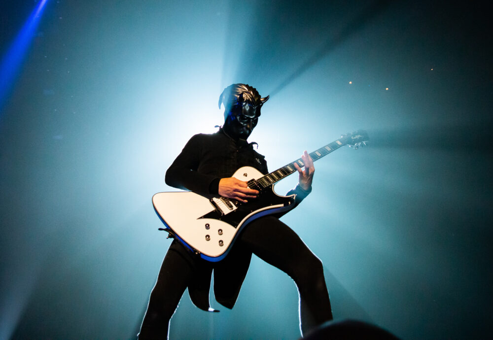 With Texas quartet Nothing More getting things started for the evening, the band’s barefoot bacchanalia went from zero to sixty really quick, as frontman Jonny Hawkins began the show as one does, by climbing his way down to the stage from some sort of free-standing scaffolding as the descent into the group’s signature high-energy performance began. With only roughly 45 minutes to get the crowd warmed up for the main event, Hawkins – backed by guitarist Mark Vollelunga, bassist Daniel Oliver, and drummer Ben Anderson – put forth an intensely emotional and well-crafted set that certainly got the crowd moving before Ghost took the stage.