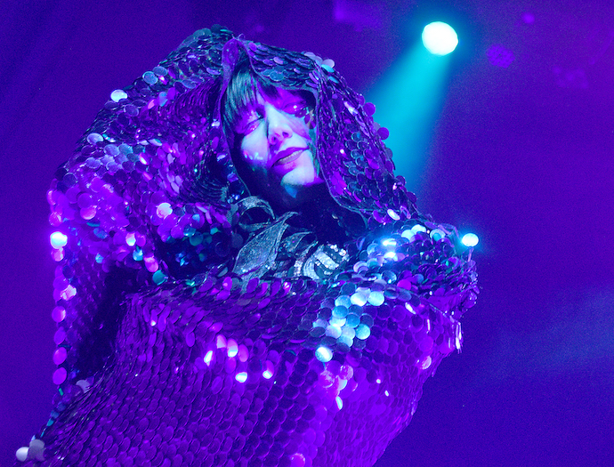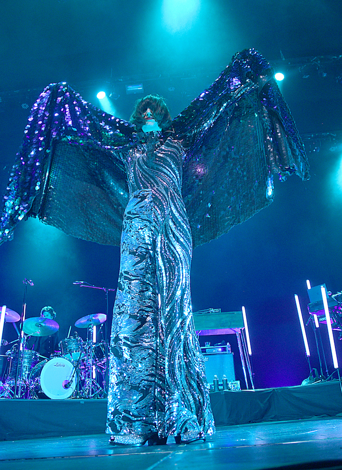 The dynamic duo were joined on stage by an expansive band, including 3 violinists, 4 backing vocalists, a cellist, a guitarist, keyboardist, guitarist, and horn players that gave a fully symphonic feel, as they played through a straight playing of the Lux Prima album, complete with the all sweeping instrumental passages and ambient intros. Karen O came out dressed in an awe-striking sequin hooded cape and hood and personified her magical goddess radiance. She did mess up a couple times with coming in on time which called for a restart, but considering the fact that the two have only played a couple of shows together, I can’t blame her too much for being a little nervous. Still, she played it off with all her alluring and super-sweet charm, and thankfully the rest of the show went off without a hitch. It did make me sad to think that this project would not go on for the moment, but considering the quality and success of the album, I do feel as though it would be possible to pick back up with a follow up, as Danger Mouse has done with many of his other music ventures like Gnarls Barkley and Broken Bells.