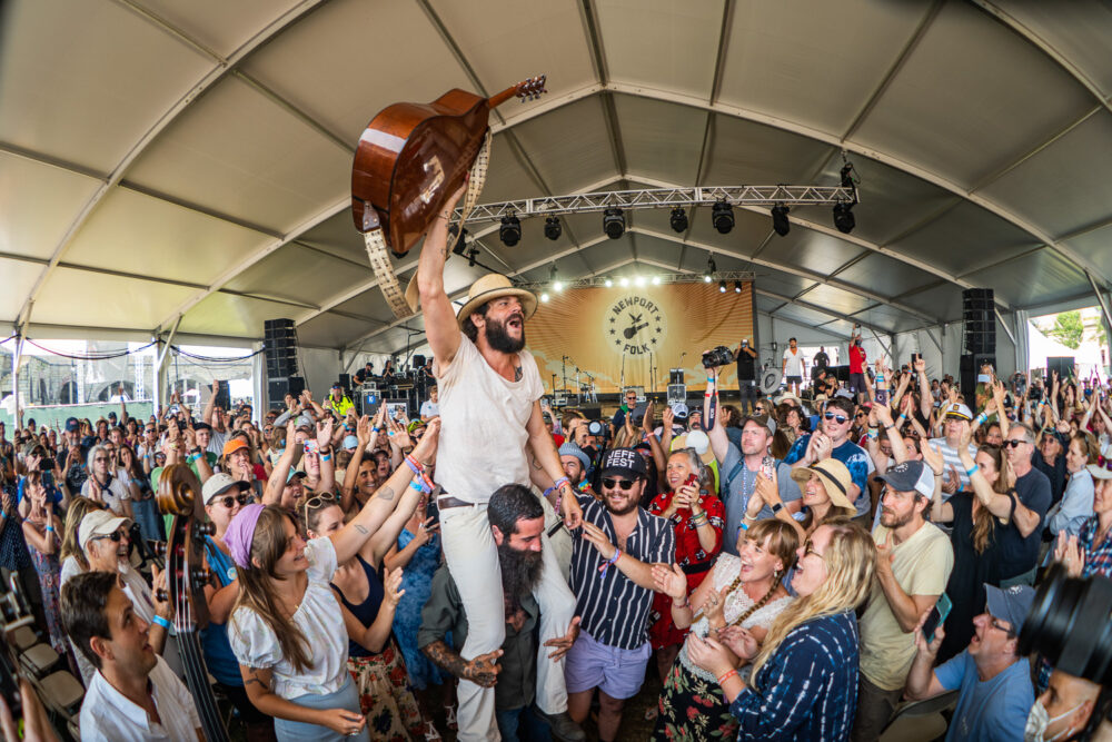 There were so many styles of “folks” over the three days. Something Newport has done, and this year more than ever, is make sure that there is diversity in the performers and the type of music we are getting. Sunny War mesmerized the crowd with a set filled with lyrics that are so vivid and colorful that you felt like you were inside of them. Katie Pruitt’s voice stretched well past the confines of the tent. Jake Blount and his band, who were playing their first show together, wowed the crowd with their fast fingers and his lyrics that draw from centuries of Black and Indigenous history that he is bringing back to life.