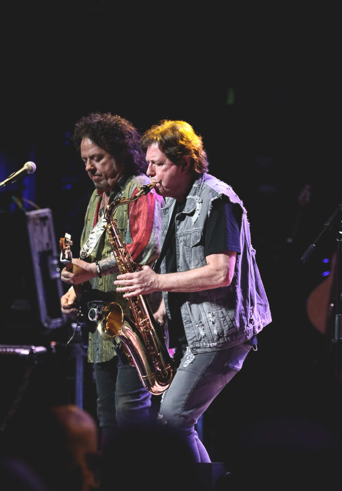 The ingenuity of this All Starr format, circa ‘89, is even clearer when you get to witness Ringo really having a blast. A total fab-four-fest would easily please, but it’s a jukebox of unexpected hits from his shifting supergroup – currently featuring Colin Hay, Hamish Stuart, Edgar Winter (out with Covid on Tuesday, sadly), Gregg Bissonette, Steve Lukather, and Warren Ham. Ringo’s bold-yet-chill drumming style was creatively applied to their bands’ classics, and his double-drummer moments with Bissonette were an epic thrill. It’s as if he once strategized, “How can I throw a party vs. put on a show?” and the outcome feels surreally intimate – like a living room jam session just broke out among some famous house guests. With Colin Hay in the lineup, we got the Men at Work grooves: “Down Under,” “Overkill,” and “Who Can It Be Now?” From Steve Lukather’s past came three Toto songs: “Rosanna,” “Africa,” and “Hold the Line.” Between all that sax-filled action, Hamish Stuart mixed in some Average White Band: “Pick Up the Pieces,” “Cut the Cake,” and “Work to Do” (originally by The Isley Brothers). Of course, we got plenty of solo Starr goodness as well, including “It Don’t Come Easy,” “I’m the Greatest,” a super-peppy “Back Off Boogaloo,” and a vivifying “Photograph,” before which he said, “I wish I had a big camera so I could take a photograph of all of you.” Ringo also took that time to praise everyone’s hand signals. “Love those peace and loves. Hey, yeah, I see you. Hello, you. Well you know, it’s that time again. Every time, I light up the audience. I’d light the audience up for the whole gig, personally, but we had complaints from some of the audience,” he deadpanned, ready to make a getaway if he got too mischievous. “I’ll say anything. I don’t care. I’ve got my car.”