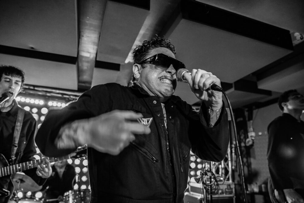 Seemingly adopting the freaky personas of their aliases, each crucial contributor slipped into a perceptible groove within their respective layer. Surging beneath the feverish delivery of soul-slinging frontman Clams Baker Jr. (“Craig Louis Higgins Jr.”/“Mutado Pintado”), the thick-yet-quick bass lines of Ben Romans Hopcraft (“Mr. Salt Fingers” – also of Insecure Men) were precisely aligned with the gnarly guitar work of Adam Harmer (“Quicksand” – also of Fat White Family). Anchoring it all in another realm altogether, the insanely tight drumming of Bleu Ottis (“Bleucifer”) was seasoned with whipping zips of synth from Marley Mackey. Clams’ booming voice evoked a circus ringmaster between songs when he revved up the audience or reacted to their antics. “That’s right, New York,” he said affirmingly. “Sometimes you’ve got to lose control to show those motherfuckers what you’ve gotta own. That’s right! Sometimes, we’re gonna push back, like right now.”