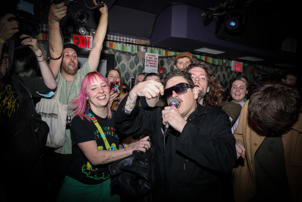 Holding out the mic to capture our slew of slurred singalong efforts, Clams kept ensuring that the bruisers within reach were inextricably part of the action. He was all smiles when he eventually joined the club and dove into the deep end of the moshy whirlpool, drifting around the small space just under the ceiling. He made a triumphant return to the stage in a snow angel pose over suddenly-gentle hands. His smooth voyage in such a rowdy environment should make it clear to the band how revered they are in this local scene. “This is a wonderful debut in New York City for us! It’s got a special space in my heart,” said Clams, who spent years living in Chelsea. “I cut my teeth [here] with all my old friends…all my new friends. Newww Yorrrk fuckin’ City! I know it’s Brooklyn, but I’m always home in New York City, wherever the fuck I’m at.”