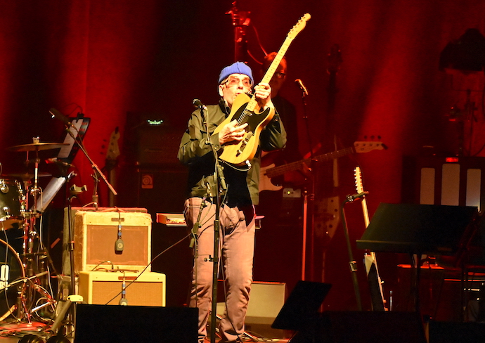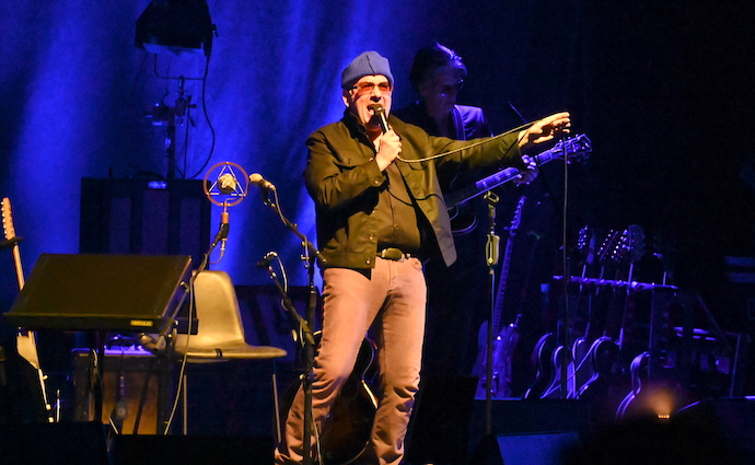 Elvis Costello and The Imposters are on the road this year on their ‘We’re All Going On A Summer Holiday’ tour, and they popped by the Beacon Theatre for a pair of shows of some classics and a lot of deep cuts, for which we caught the second of the two nights, and I felt the set turned out to be a very mixed back of fortunes. Despite persisting rumors that he intends to retire from the rock star life, especially after admitting in interviews that the lifestyle “just isn’t fun anymore,” Elvis Costello has actually been a virtual non-stop touring machine since the pandemic shutdown and recovering from a prostate cancer scare back in 2018, and he even just played an endurance-testing 10 night stand at NYC’s Gramercy Theatre back in February where he played almost every song in his impressive thirty some album catalogue. The one night I saw of that amazing run he had a surprising amount of gunpowder zest still in his frontman arsenal; however, at this show, he was sadly already showing some of the exhaustion one might expect from a rock god looking to take a bit of a nap. His voice faltered and cracked many times during his set, and he spent a considerable part of the show seated, even though he was visibly fidgety and looking to bounce around the stage like he used to, but instead he was getting winded and plopping back in his seat instead. Still, the show had some extra pep with the addition of a horn section, and that helped keep the show popping. Elvis burst onto the music scene back in 1977 with the album My Aim Is True that had classic songs like “Alison” and “Less Than Zero,” and that immediately established him as a powerful new voice in rock that mixed powerful punk energy, a neurotically uneasy New Wave zeal, and a blistering classic rock confidence to produce a very original and influential sound. I will say that the musical backing for this show was very killer and hit every moment with intense precision, which should not have been a surprise for serious fans, seeing as Elvis has re-grouped with his band The Imposters which includes keyboardist Steve Nieve and drummer Pete Thomas from his very first band The Attractions that he played with until the late 80’s, along with bass player Davey Faragher (of the band Cracker) who he has played with since the early 2000’s, and these already illustrious ranks were joined this time around by legendary guitarist Charlie Sexton known for his time playing with Bob Dylan as well as his own work with his Charlie Sexton Sextet.