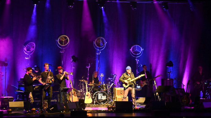 Opening the show was another blast from the past for Costello fans, as the musician’s musician Nick Lowe was opening, and he was a rather successful singer/songwriter on his own, but he is also known as the genius producer behind Elvis’ first several albums. He was an amazing frontman throughout and swooned the audience with his quintessentially smooth harmonies and velvet voice with an incredible set of classics that has apparently changed nightly with the backing of the timelessly awesome swagger of the 80’s surf band Los Straitjackets supporting the master all dressed in their iconic Mexican wrestling masks and mariachi-flavored suits and blasting just the most excellent mixtures of spicy rhythms and tasty licks that did very much heat up his classically chill sound. He started with timeless solo tracks like “So It Goes” and deeper cuts like “Ragin’ Eyes” before he left the stage and there was a middle section where Los Straitjackets took over and played instrumental romps like The Ventures’ “Driving Guitars” and The Magnificent Seven Theme before Lowe resurfaced in a different suit and blasted some of his more well-known ear-candy pop hits like “Cruel to Be Kind” and finishing with a timeless track “When I Write the Book” that he even made mention of being the influence for Elvis’ big hit “Everyday I Write the Book.”