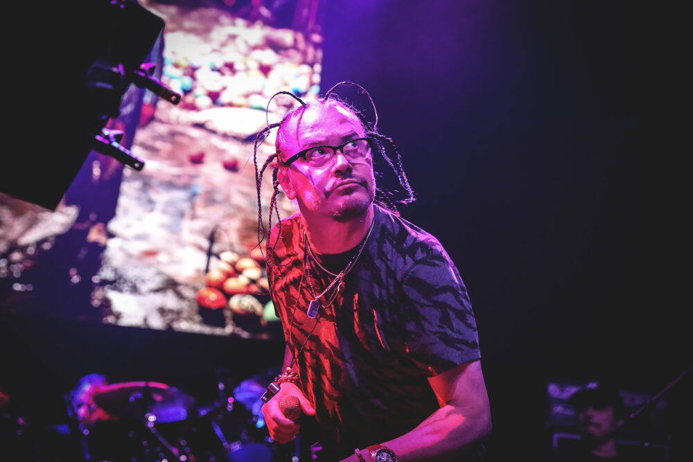 The words associated with the best metal, like loud, fast, and heavy, don’t speak to the intricacies of Mr. Bungle’s live power. Even while their muscles set off a storm of sounds with sticks, strings, and sweat, their minds reside in the eye of the hurricane. Surely because these legends are so adept at their crafts, they appeared to relax into their own precise chaos as they continued their first East Coast tour in 23 years. Flickers of bliss suffused the bone-rattling intensity of their NJ show. Mike Patton (Faith No More) was so happy flashing wide eyes and smiles at their many jumping fans, his sudden death growls and sinister vocals were extra arresting. The way guitarist Trey Spruance tore up vicious licks was even more entrancing than the movement of his long hair, which floated in the artificial wind as if he was underwater. Watching the scrupulous hands of rhythm guitarist Scott Ian (Anthrax) up close was like examining a hive of bees at work. The formidable speed metal machine behind them – nimble bassist Trevor Dunn locked into the pulse-altering drumming of Dave Lombardo (Slayer) – slammed each beat into being so rapidly, time itself seemed to conversely slow down.