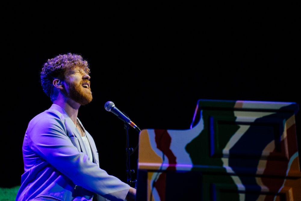 Along for this ride, JP Saxe took the stage promptly at 8pm. Settling behind a piano, with his name displayed in giant text on the screen behind him and every color of the rainbow painting the stage, he delivered a 7-song set that stretched through a wide range of emotion, including some funny banter about his new relocation to NY and becoming a local. Having been his 4th time in NY opening for John, there wasn’t a moment wasted – each song expressed a sentiment of how to be present and in the moment and allowing yourself to be open to all of life’s experiences, whether good or bad. His slightly raspy vocals and effortless vibrato had me a bit lost in the songs, which seems to fit well with the mood he wove in the room that evening. I definitely made a mental note to catch his solo show here in March 2024.
