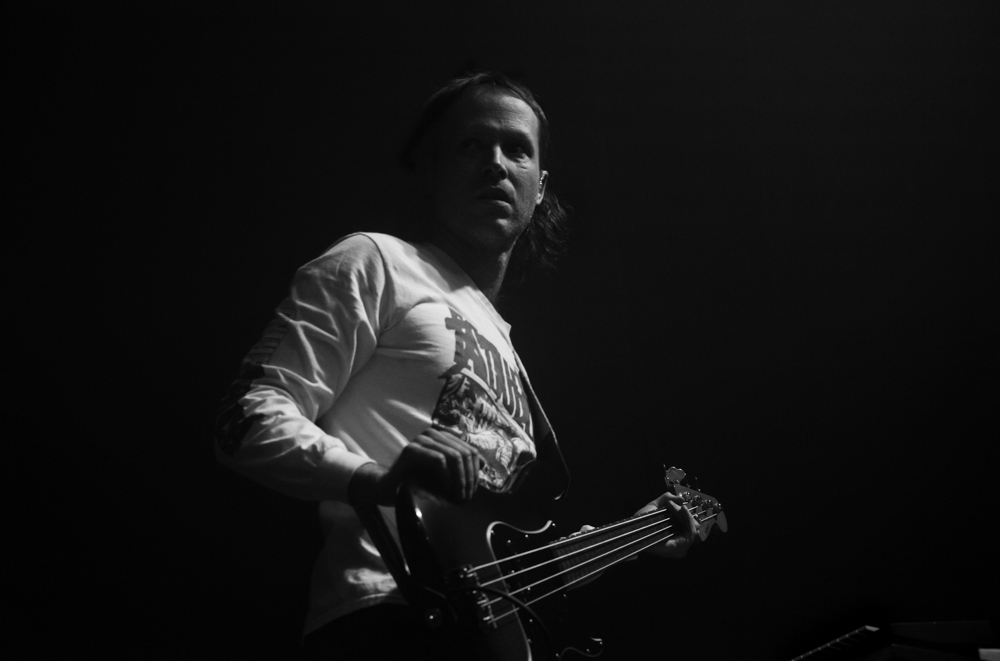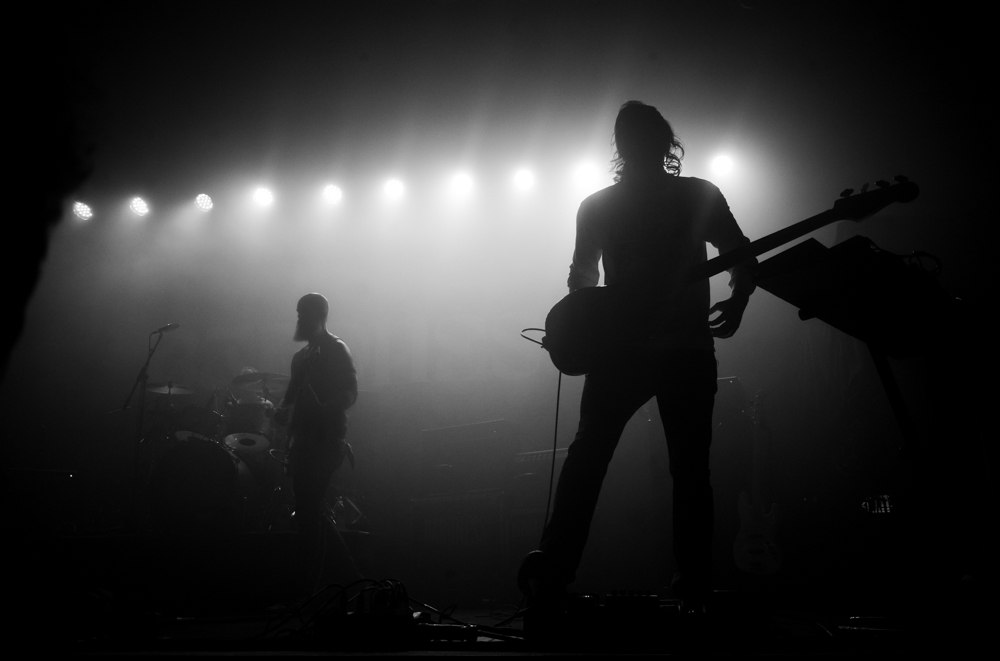 When Baroness began I was already positioned and framed up at the lip of the stage. I knew which lenses I was going to use and how and where they would be used. The experience of shooting an energetic band up close using the narrowest depth of field possible without autofocus is worth trying to describe. The only thing harder to shoot that way is a bonkers toddler running around the house. It requires rapt attention. Much of which is paid to maintaining focus at all times. The name of the game is Always Be Focusing, so you can squeeze on any decisive moment and score. The squeeze-timing part requires as little of my attention as anything else that’s purely instinctual.