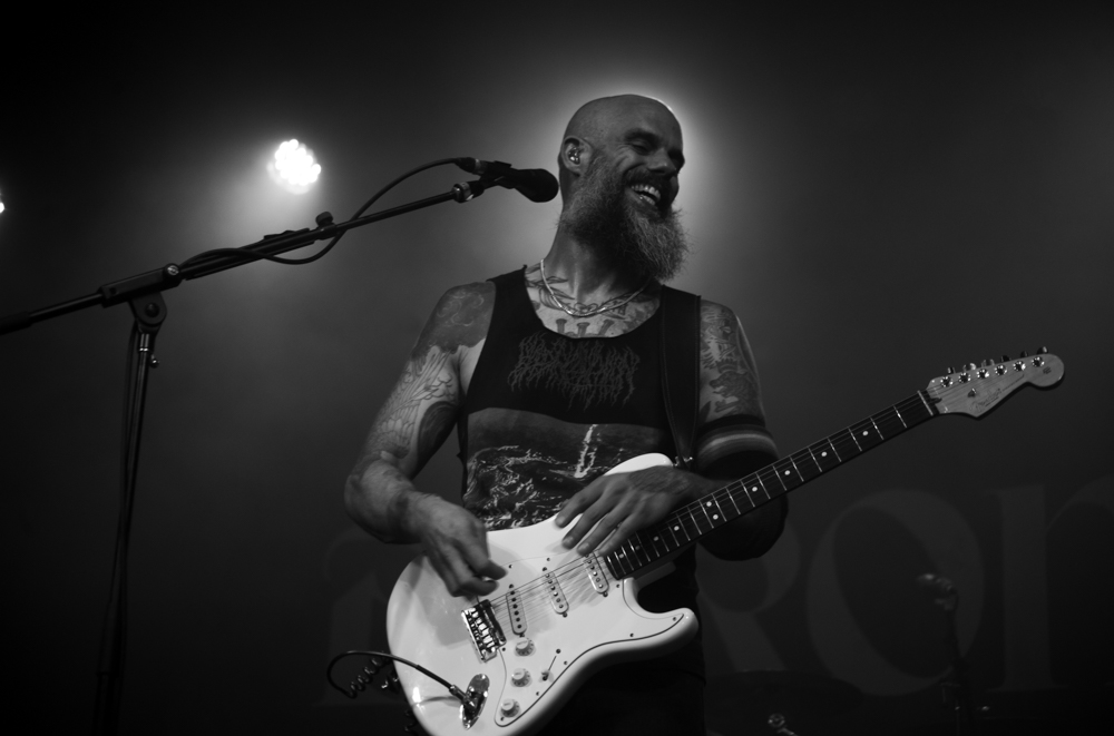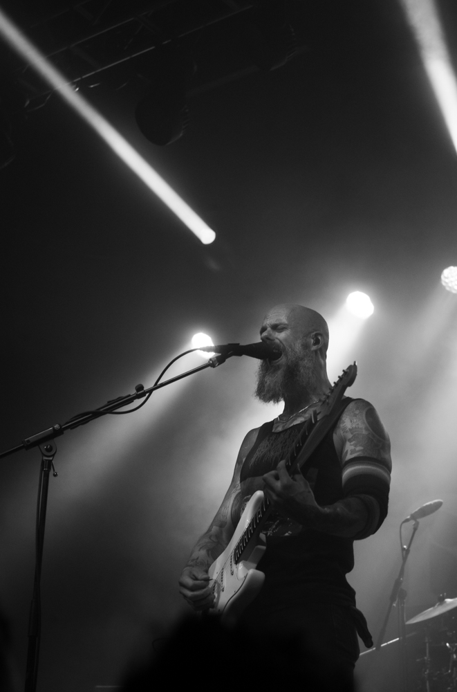 Baroness frontman John Baizley’s appearance is essentially that of a Heavy Metal Zeus. He’s fearsome to behold. His guitar probably actually HAS killed fascists. I would love to shoot him as Atlas holding up the world. He’s also an incredibly talented visual artist. I think I was informed at least three or four times that night (by people in Baroness shirts) that he creates the marvelous illustrations that grace their album covers. So while he looks like a pitiless brutal MMA fighter, he’s an artist in more than one discipline which means he’s likely actually quite sensitive. Real artists usually are. And both of those sides were reflected in the music I heard.