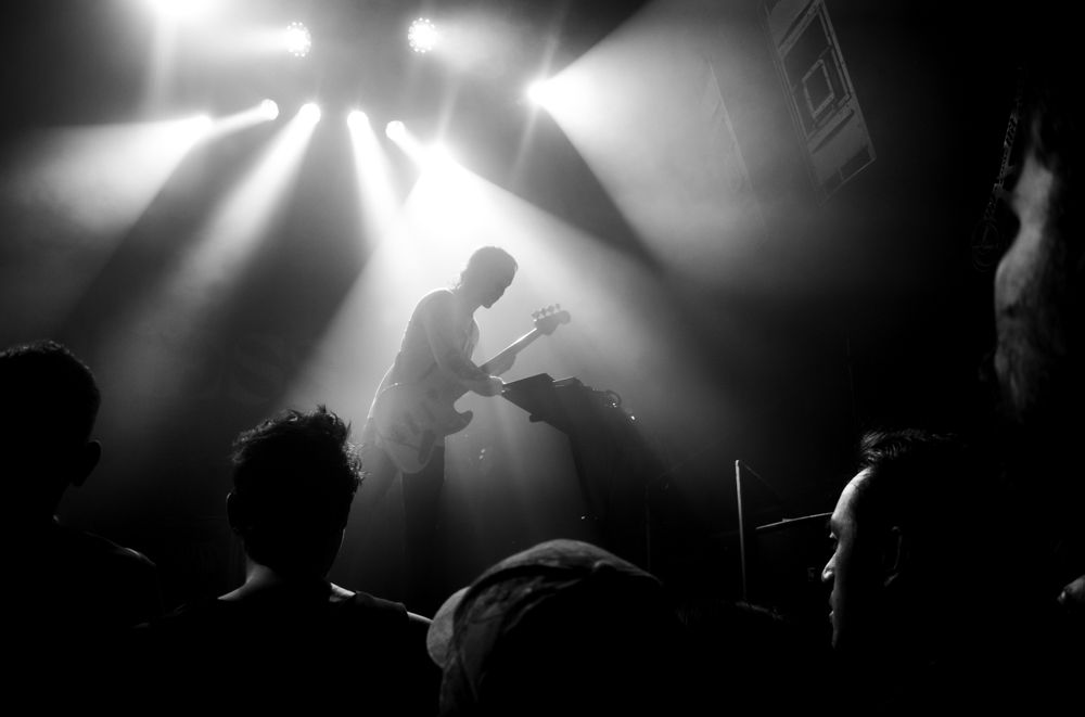 And then the song ended and I was back out in the club. Immediately I took to the balconies to get that perspective, then I descended and gently, without disturbing anyone in the dense crowd, slipped through all the way to the second row center. I could’ve moved up further but I wanted to include people in the foreground looking up at the stage. “Beneath The Rose” had just ended and “Green Theme” had begun, an instrumental that begins with a gentle intro with a eerie undertone before demonstrating that power chords with a generous amount twang should be more of a thing in Metal, before closing with an unadorned stretch of that droning eerie undertone.